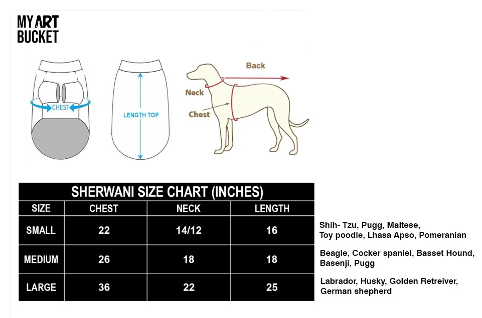These Dog Sherwani jackets are a beautiful, custom made outfit, to compliment your dog’s personality. An ethnic walking functional gear for your pooches to flaunt this festival or any traditional occasions. Choose from the various options below!