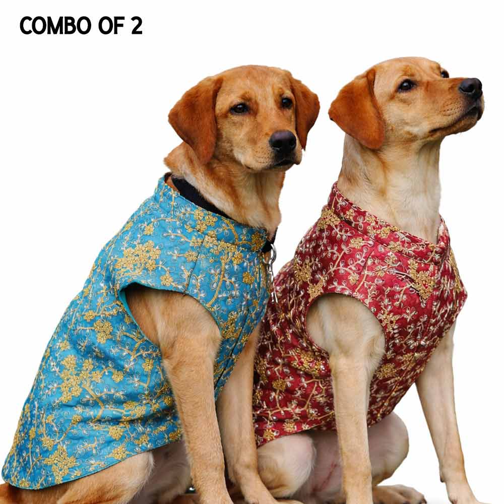 Maroon & Blue sherwani for dogs- Combo of 2