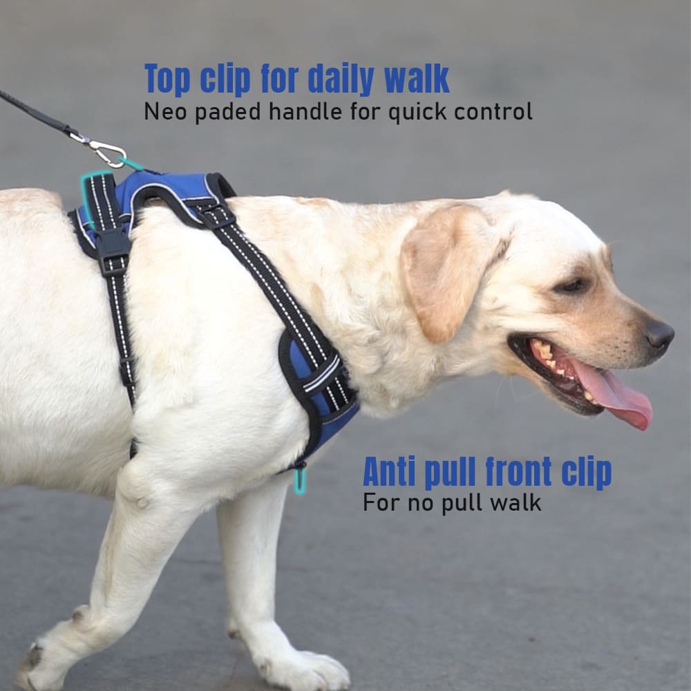 𝗘𝗫𝗖𝗘𝗟𝗟𝗘𝗡𝗧 𝗦𝗔𝗙𝗘𝗧𝗬 & 𝗖𝗢𝗠𝗙𝗢𝗥𝗧 𝗙𝗢𝗥 𝗬𝗢𝗨𝗥 𝗗𝗢𝗚 – This chest harness is lightweight, durable, and designed for convenience, featuring quick-snap buckles for easy on-and-off use. The secure locking mechanism on both snaps prevents accidental detachment. Perfect for daily walks, running, hiking, training, hunting, and outdoor adventures. Made from sturdy nylon oxford and padded with a soft cushion to protect your dog’s skin, while the breathable air mesh keeps your pet cool during outdoor activities. Bright reflective strips ensure visibility and safety at all times.