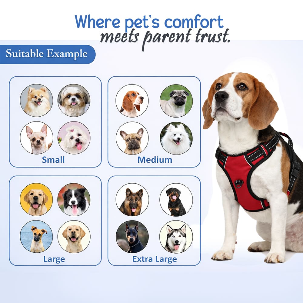 𝗘𝗫𝗧𝗥𝗔 𝗟𝗔𝗥𝗚𝗘 𝗗𝗢𝗚 𝗛𝗔𝗥𝗡𝗘𝗦𝗦 – Recommended for large and giant breeds such as Working Dogs: Rottweiler, Doberman Pinscher, Boxer, Siberian Husky, Alaskan Malamute. Sporting Dogs: Golden Retriever, Labrador Retriever, German Shorthaired Pointer, Flat-Coated Retriever, Chesapeake Bay Retriever. Herding Dogs: German Shepherd, Australian Shepherd, Belgian Malinois, Collie, Old English Sheepdog. Hound Dogs: Bloodhound, Basset Hound, Treeing Walker Coonhound, and more.