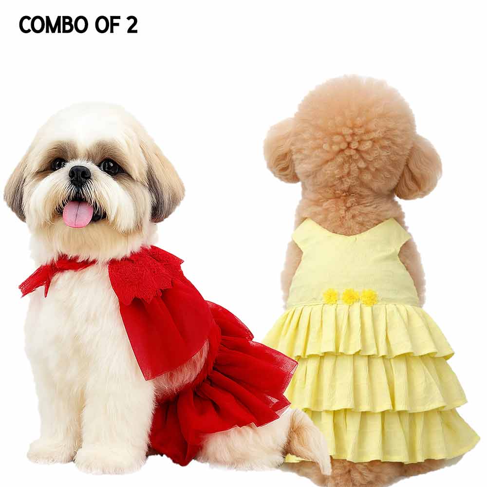 Red Barbie Dress & Butter Yellow Dress- Combo of 2
