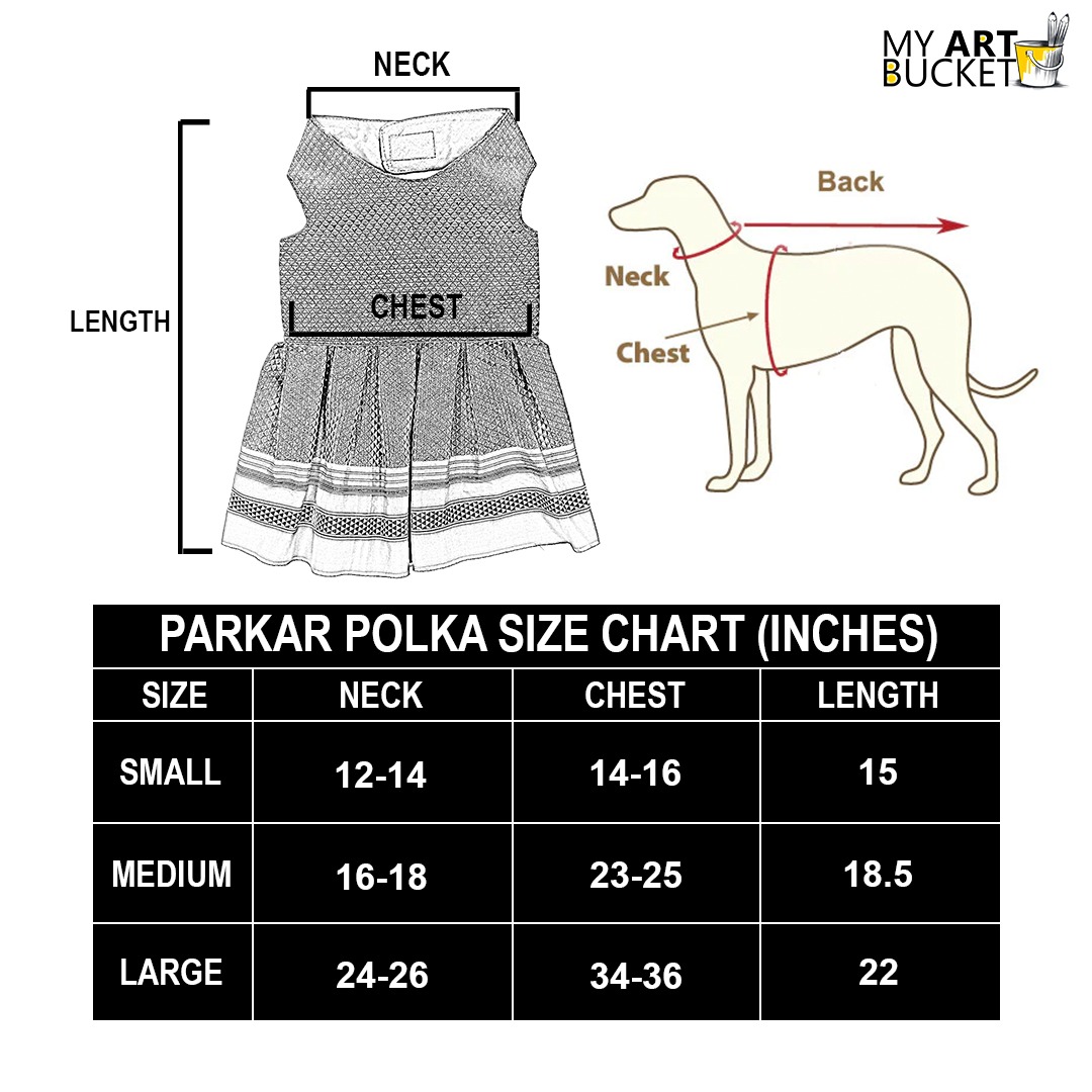 These Dog Parkar polka is a beautiful, handmade outfit, to compliment your dog’s personality. An ethnic walking functional gear for your pooches to flaunt this festival or any traditional occasions. Choose from the various options below!