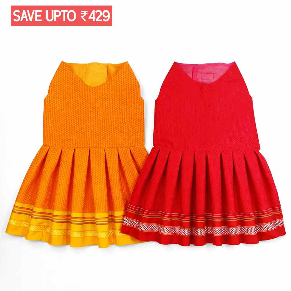 These Dog Parkar polka is a beautiful, handmade outfit, to compliment your dog’s personality. An ethnic walking functional gear for your pooches to flaunt this festival or any traditional occasions. Choose from the various options below!